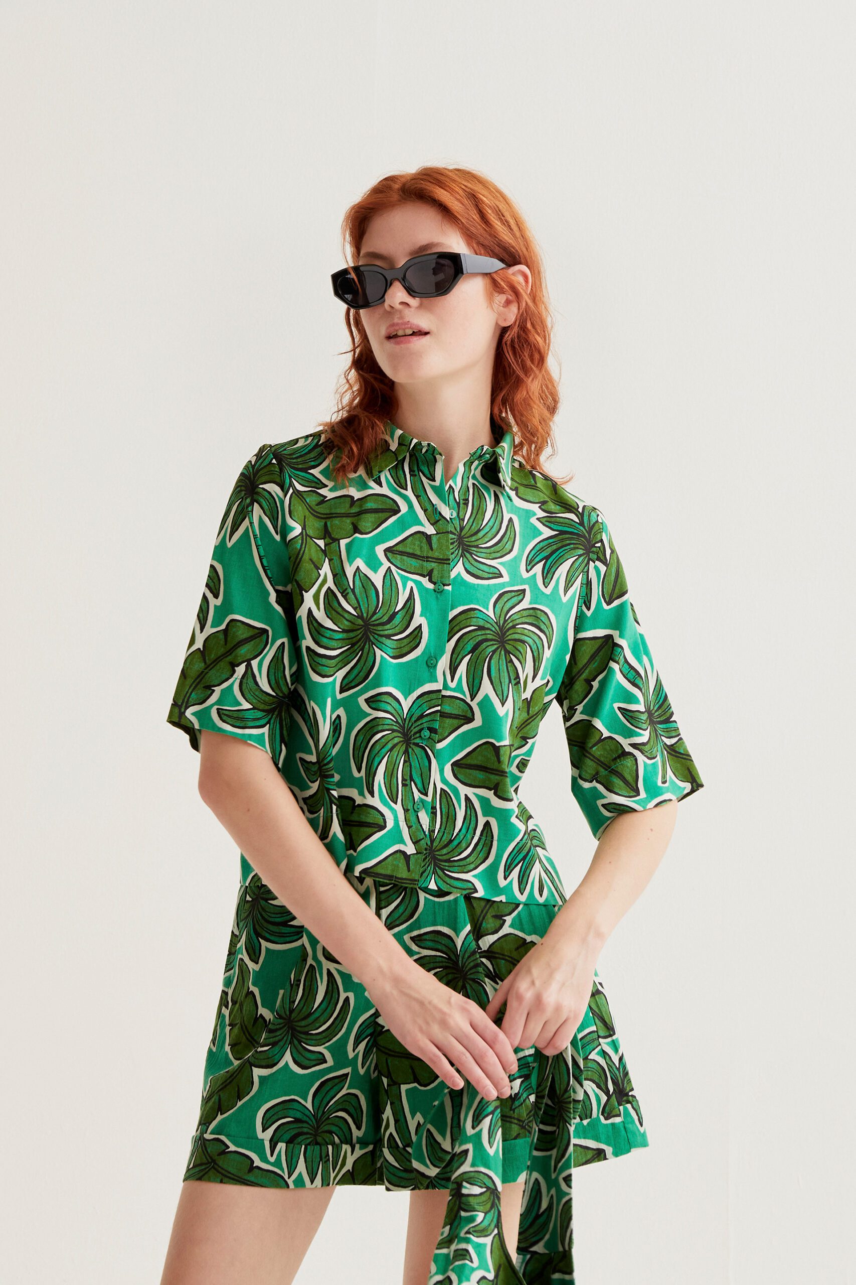 Palm tree print shirt.