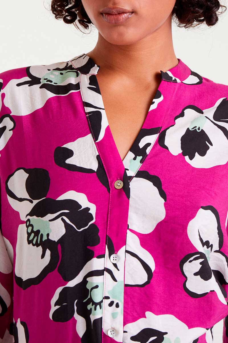 Ελαφρύ κρεπ πουκάμισο με τύπωμα Vivid Viola.