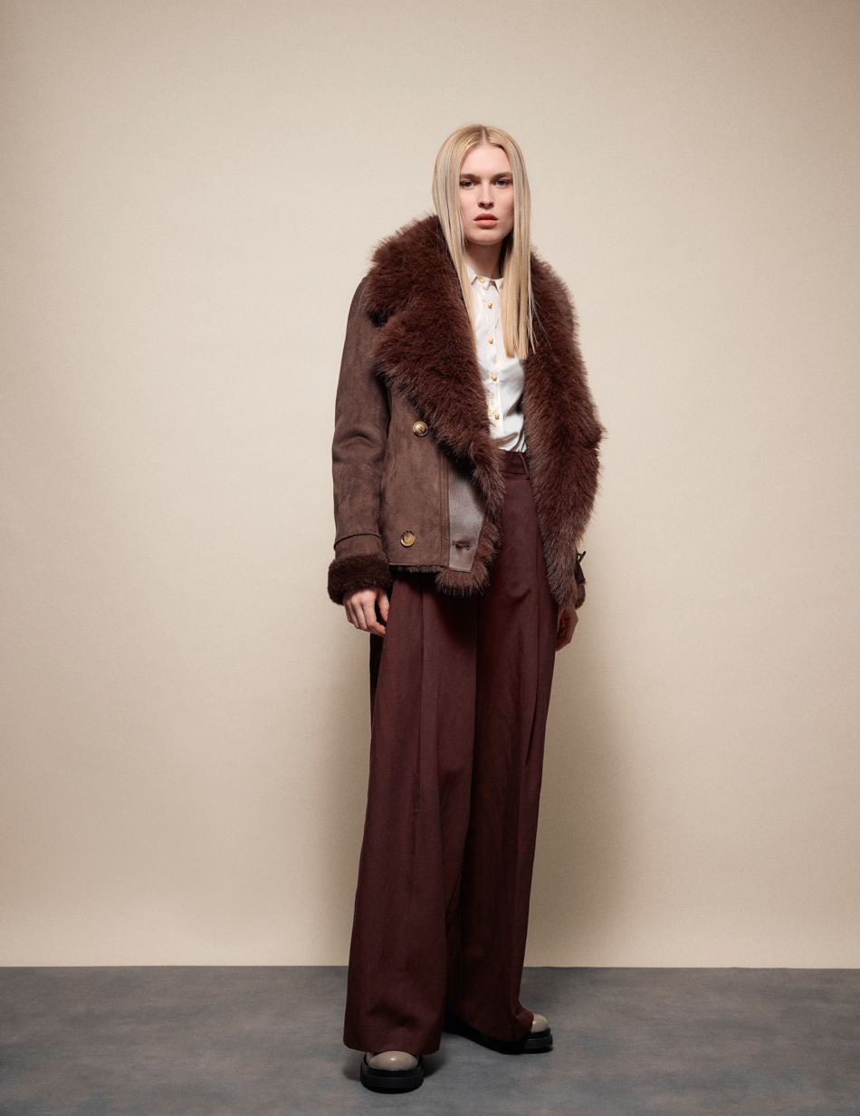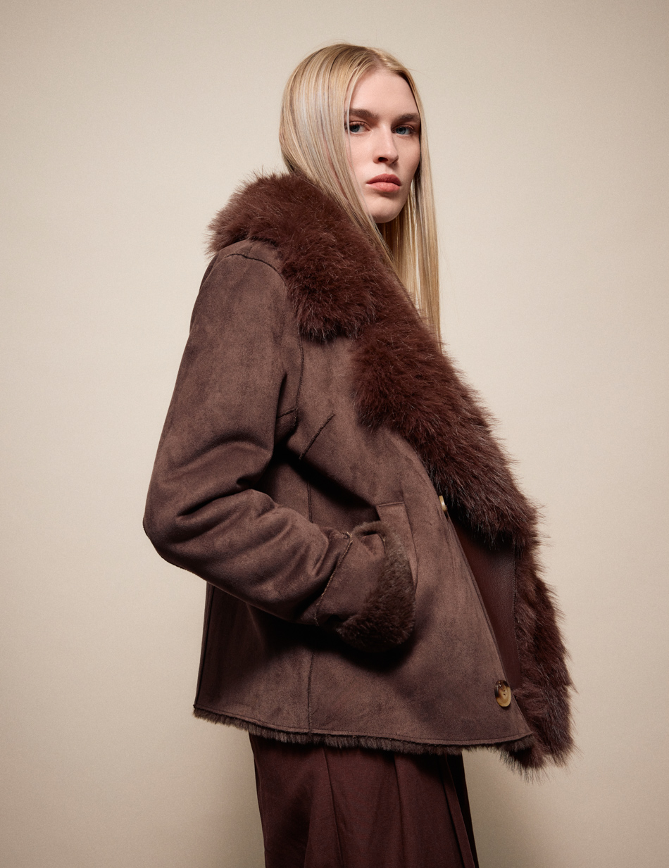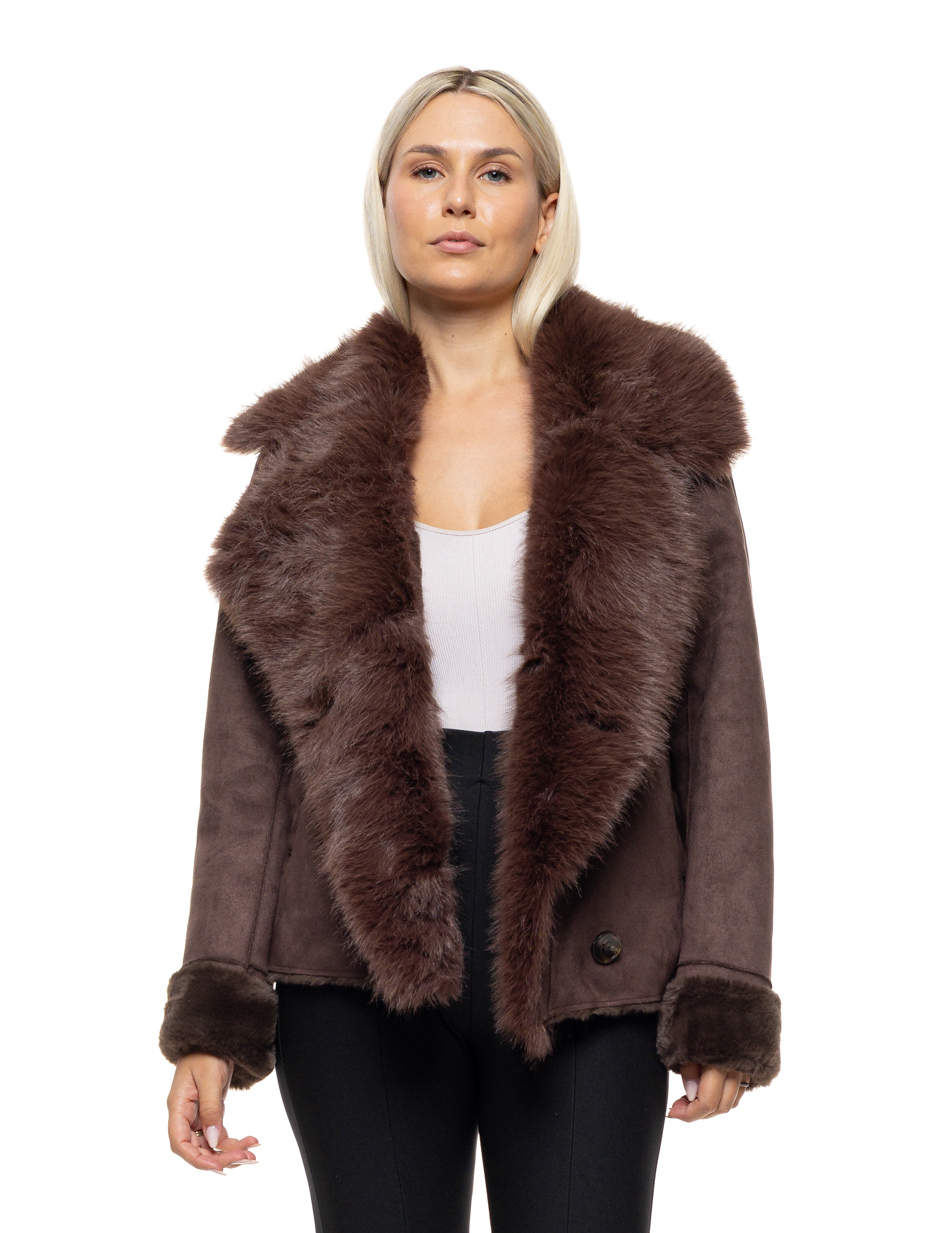 Splendid κοντό πανωφόρι καστόρ και συνθετική γούνα